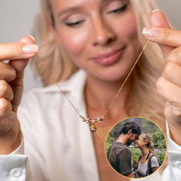 Jede Halskette trägt eine intime Note mit Ihrem gewählten Bild im Inneren. Schauen Sie hinein oder nutzen Sie die Kamera Ihres Smartphones, um das verborgene Bild zu entdecken.